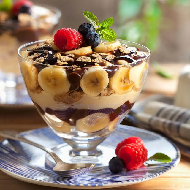 Se trata de una copa de plátano con chocolate, un postre buenísimo, fácil de realizar y visualmente sorprendente.